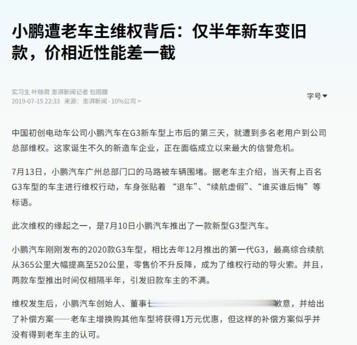 不但因推出新款性价比更高的G3导致老车主集体维权。