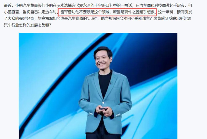雷军与何小鹏一直在上演“互相劝阻又彼此成全”的戏码。
