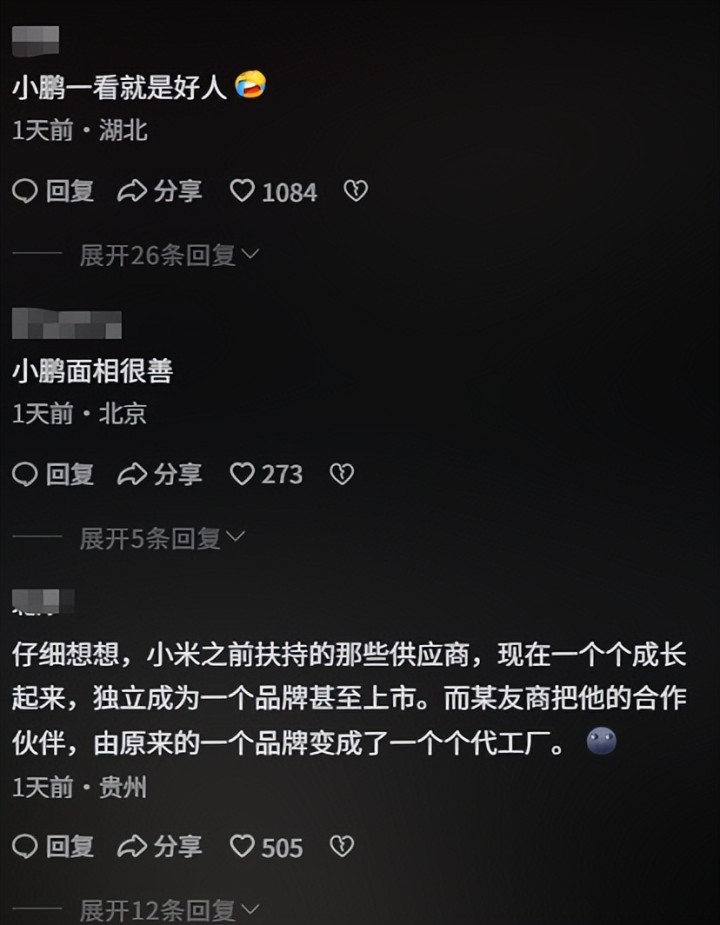 还有人说“何小鹏确实是个体面人。”