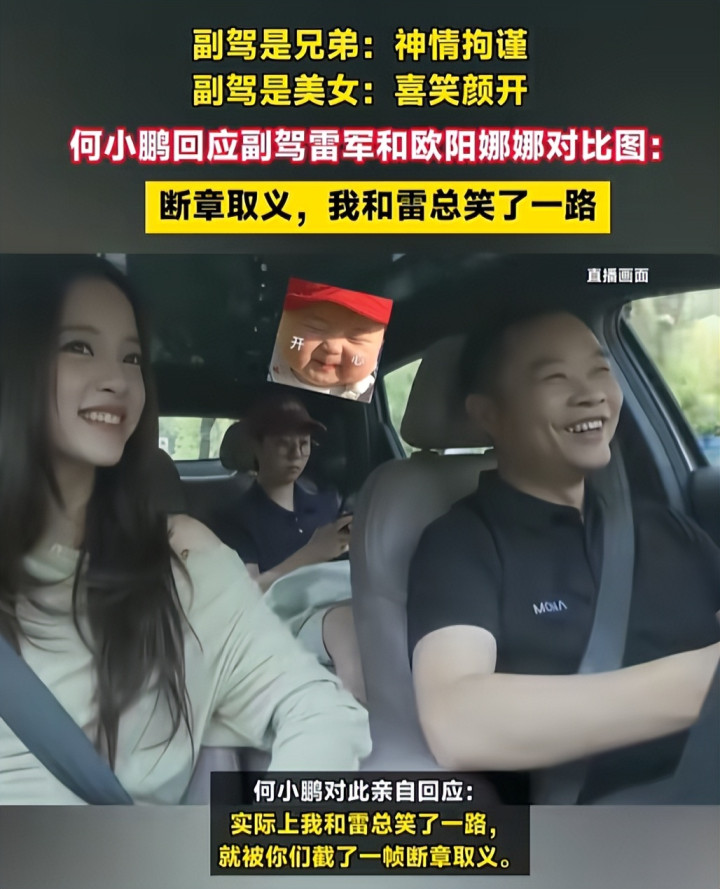 上面是欧阳娜娜坐在何小鹏副驾驶。