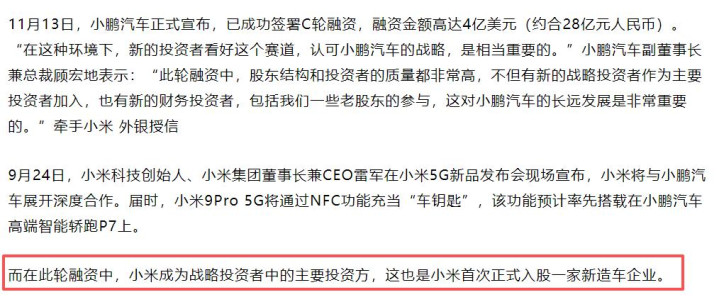 雷军带着小米领投,直接为何小鹏拉到了整整四亿美元的投资。