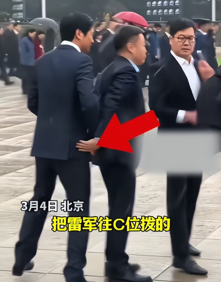 他伸出手轻轻推了雷军一把,把他让到了三人中间的C位。