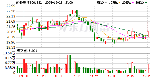 证券日报网讯 12月25日,新亚电缆在互动平台回答投资者提问时表示,公司产品应用于电力、轨道交通、建筑工程、新能源、智能制造装备等领域,最终对于电线电缆下游的具体应用场景,由客户根据自身需求确定。公司主要产品为电线电缆,包括电力电缆、电气装备用电线电缆及架空导线等,其中,电力电缆产品分为中压电力电缆、低压电力电缆,主要产品为额定电压1-35kV交联聚乙烯绝缘电力电缆;架空导线类产品分为裸导线和架空绝缘电缆,主要产品包括额定电压为1000kV及以下的高压、超高压及特高压钢芯铝合金绞线、钢芯铝绞线、铝包钢芯铝绞线、智能电网建设用耐热铝合金绞线,额定电压20kV及以下的铝合金绞线、架空绝缘电缆等。截至2024年年末,公司在职员工的数量为957人。相关情况请关注公司在选定媒体上披露的公告。